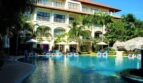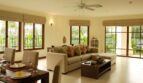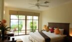 This deluxe apartment is within a development of 56 units in 4 blocks. It is at the end of Block A with additional windows on the side, making it bright and airy. Located on the ground floor it avoids climbing stairs. The separation from the pool through landscaped gardens ensures full privacy. Unlike most other apartments, which are close to the pool, there is no disturbance by strangers sitting in front of the apartment. A small garden is at the outside, which is practically for private use. It has a master bedroom, guest bedroom, kitchen, living area, bathroom, WC with basin, air condition and ceiling fans. Included are all furniture, essential appliances, cutlery, crockery, linen, TV.
