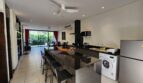 This large two bedroom apartment has been finished to a modern style and is part of a popular low density and well managed apartment development bordering Bangtao and Surin. It has a European style kitchen and the apartment comes fully furnished. The apartment has en-suite bathrooms and a nice outdoor terrace with views over the tropical gardens. The apartment is located on the ground floor making it for easy access to the developments resort style leisure swimming pool.