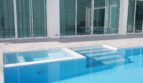 It has a L shaped lay out with living room and bedrooms facing to the swimming pool and garden. It has a fully equipped modern kitchen and is sold fully furnished and ready to move in. The swimming pool size is 10×5 Sqm with a heated Jacuzzi. It has an automatic irrigation system and CCTV cameras installed. There is covered parking for 2 cars.
