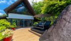 The property’s architectural harmony and feng shui balance are reflected in its layout: Villa Yin crowns the hillside, flowing gracefully down to Villa Yin-Noi through landscaped gardens that cascade toward the rocky shoreline. The setting—where jungle meets ocean—creates an atmosphere of calm and connection to nature.
