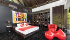 Villa Yin-Noi is a tranquil two-bedroom retreat that connects to the main villa yet functions as a fully independent residence. The master suite features a king-sized bed, private terrace, and a luxurious ensuite with a freestanding stone bathtub and rain shower framed by glass walls. A study area and designer seating by Charles Eames, Eileen Gray, and Eero Aarnio reflect the property’s commitment to artful living.