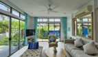 This is a luxury private pool villa of 3 bedroom and 4 bathrooms + 1 maids room with a separate kitchen and bathroom in the very conveniently located Tanode Estate development in the Cherngtalay area of Phuket close to Layan and Bangtao Beaches. The villa has a built up area of 295 Sqm and the land plot is 500 Sqm. It has a fully equipped kitchen and a large living room area with high ceilings that opens up to a lovely outdoor garden and swimming pool.