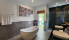In the main building there is two well appointed bedrooms with en-suite bathrooms and the third bedroom is located in a separate pavilion with a very large bathroom and beautiful views over the swimming pool and garden. The villa is sold fully furnished and ready to move in. It has private parking and is overall a very peaceful and private property within a community of only 13 villas. It was completed in 2015. The ownership of the villa is foreign freehold and the land is under Thai Freehold.