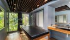 The master bedroom suite is on the uppermost floor above the main living areas. It is replete with four poster beds, private sea view balcony and a spacious bathroom with a large white terrazzo bathtub. Beautiful Makha timber floors are laid throughout the large bedroom.